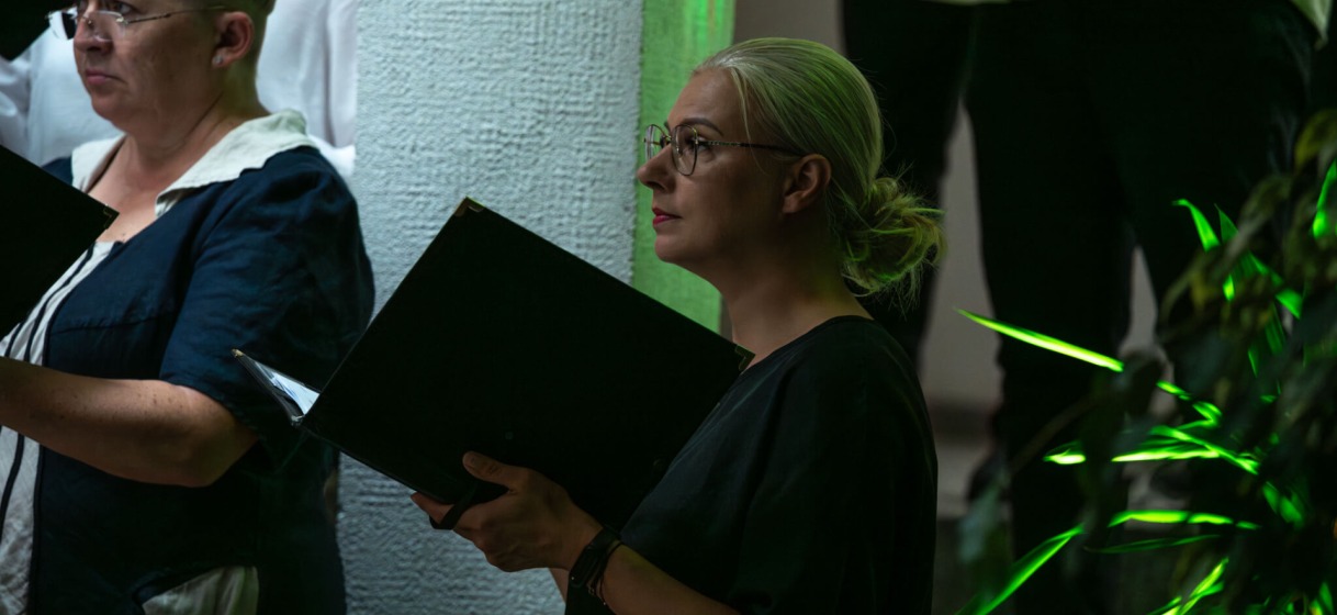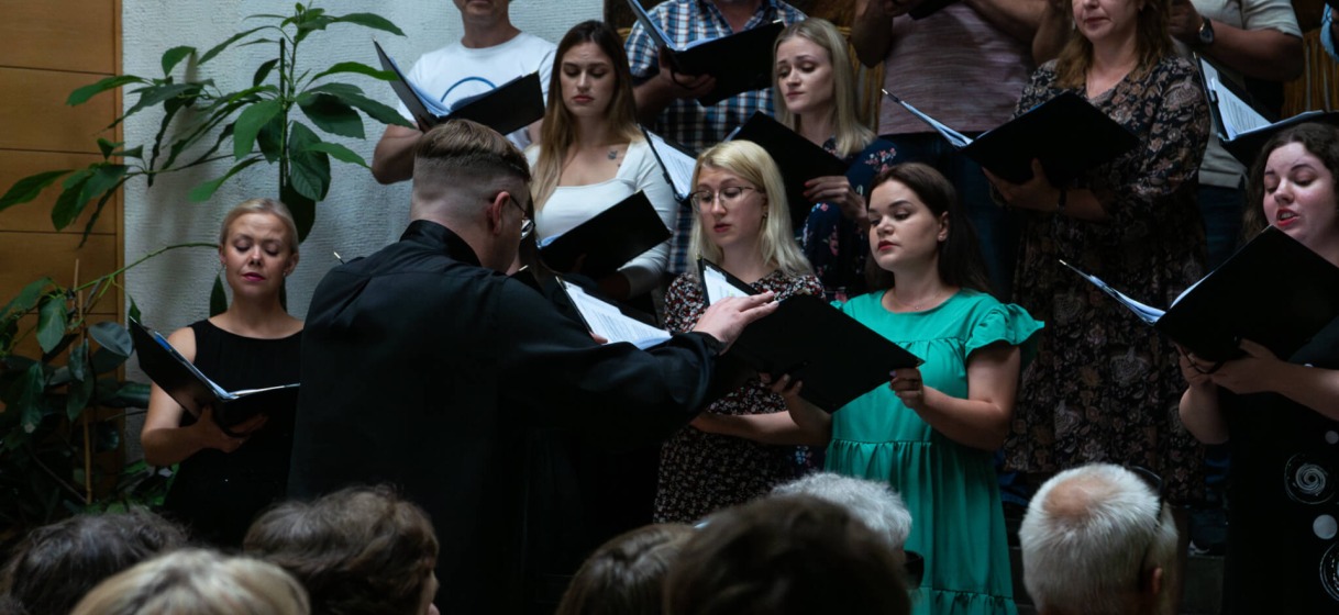 Jaunųjų kompozitorių kūrinius atliko choras „Polifonija“, dirigavo Linas Balandis.