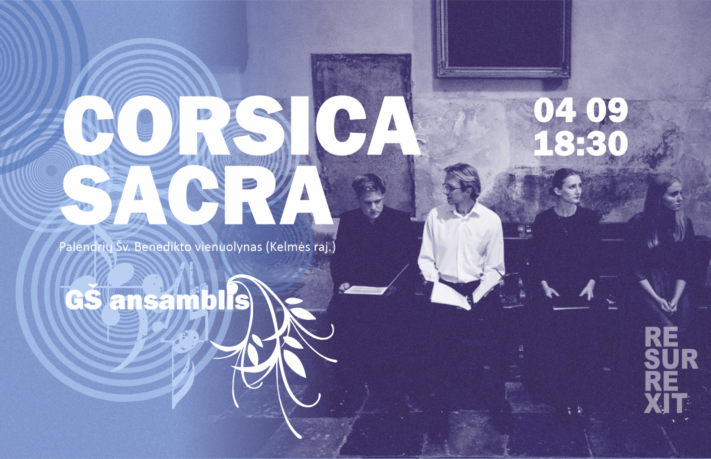 Šio koncerto programoje skambės Korsikos sakralinė muzika, atverianti mažiau pažįstamą, tačiau nepaprastai turtingą šios salos muzikinės kultūros klodą. Šiandien korsikietiška daina dažniausiai siejama su polifonine tradicija, tapusia savotišku salos tapatybės ženklu. Tačiau polifonija tėra tik dalis platesnės ir gerokai senesnės muzikinės praktikos. Korsika buvo ir galingos monofoninio giedojimo tradicijos lopšys – ši tradicija gyvavo iki pat XIX a. pabaigos, o vėliau beveik išnyko iš gyvosios atminties.