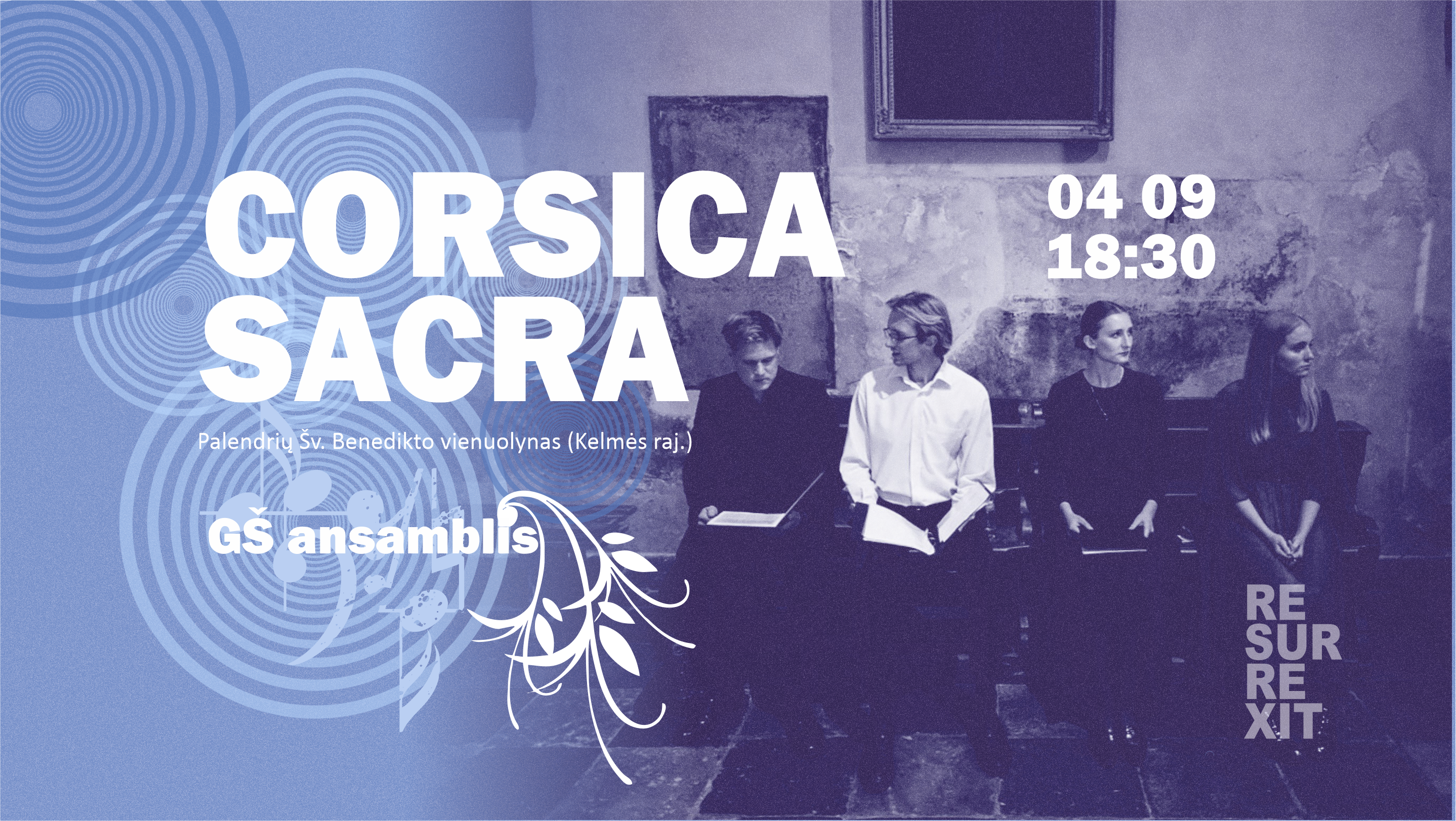 Šio koncerto programoje skambės Korsikos sakralinė muzika, atverianti mažiau pažįstamą, tačiau nepaprastai turtingą šios salos muzikinės kultūros klodą. Šiandien korsikietiška daina dažniausiai siejama su polifonine tradicija, tapusia savotišku salos tapatybės ženklu. Tačiau polifonija tėra tik dalis platesnės ir gerokai senesnės muzikinės praktikos. Korsika buvo ir galingos monofoninio giedojimo tradicijos lopšys – ši tradicija gyvavo iki pat XIX a. pabaigos, o vėliau beveik išnyko iš gyvosios atminties.